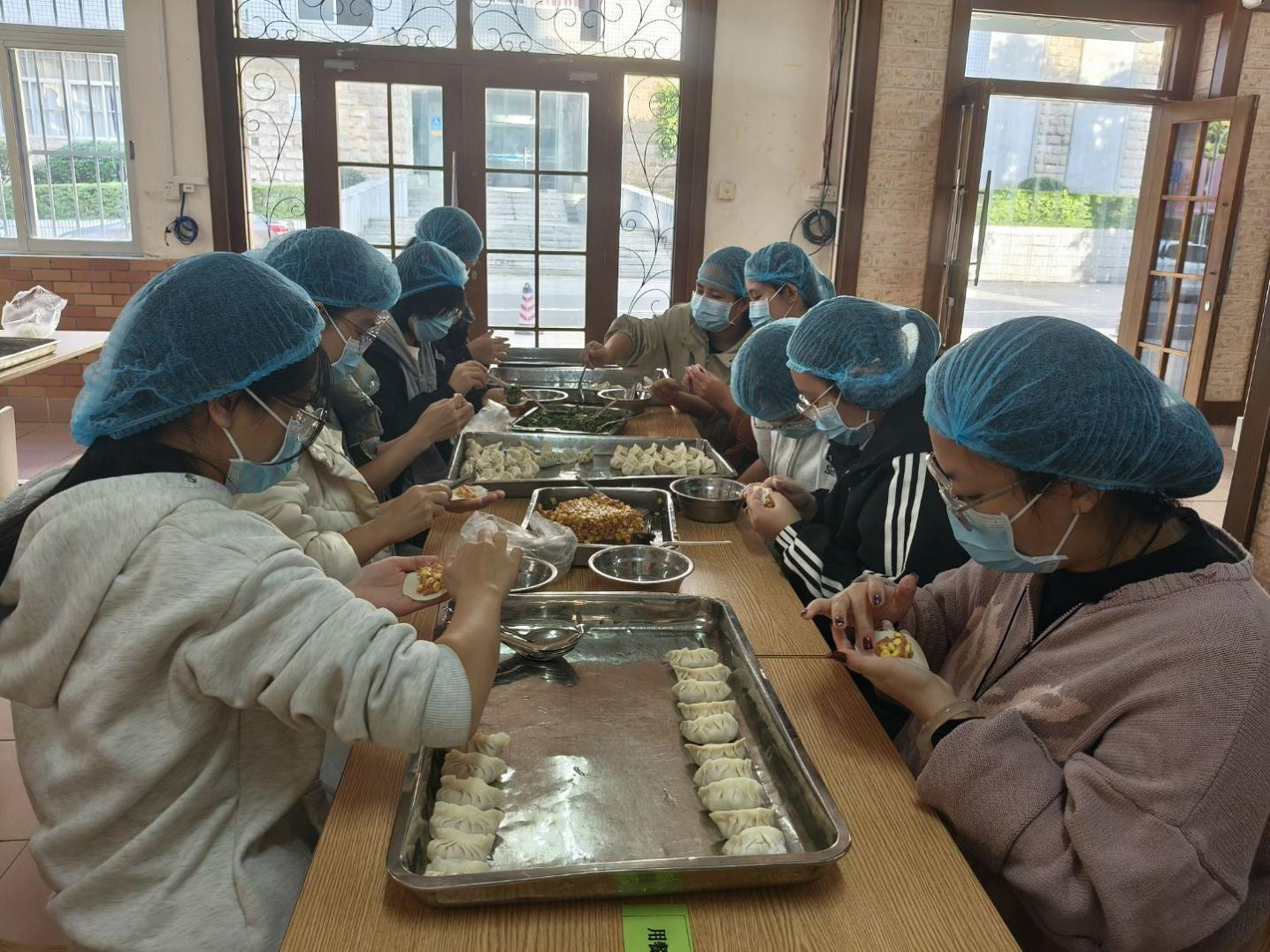 为使活动准备更充分,伙管会联合后勤基建处膳食科共同完成场地布置、食材采购、场地布置,通过线上渠道招募学生参与;食堂工作人员提前准备了充足的饺子皮、多口味馅料等原材料,还备齐厨师帽、口罩、清洁用品等防护及操作物资。活动中,同学们分组分工规范穿厨师帽和口罩、在食堂师傅的专业指导下分组动手包饺子;各校区根据现场参与人员的口味偏好与需求,灵活调整饺子的蒸煮时长和方式,完成后大家共同品尝亲手包制的饺子,现场氛围热烈,精彩瞬间被定格记录。